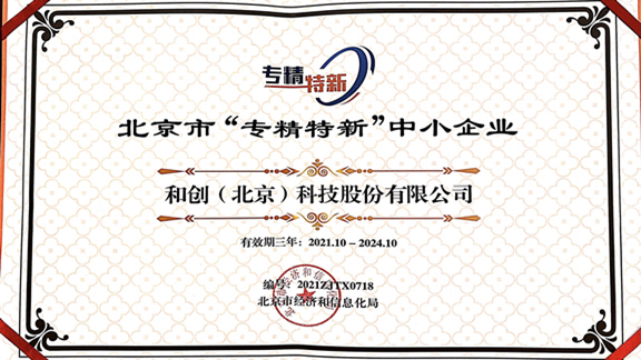 和創(chuàng)科技憑借技術突破、產(chǎn)品創(chuàng)新、細分市場優(yōu)勢及拓展?jié)摿Φ榷喾矫鎯?yōu)勢,榮獲北京市經(jīng)濟和信息化局2021年度第二批認定的專精特新“小巨人”企業(yè)榮譽稱號。