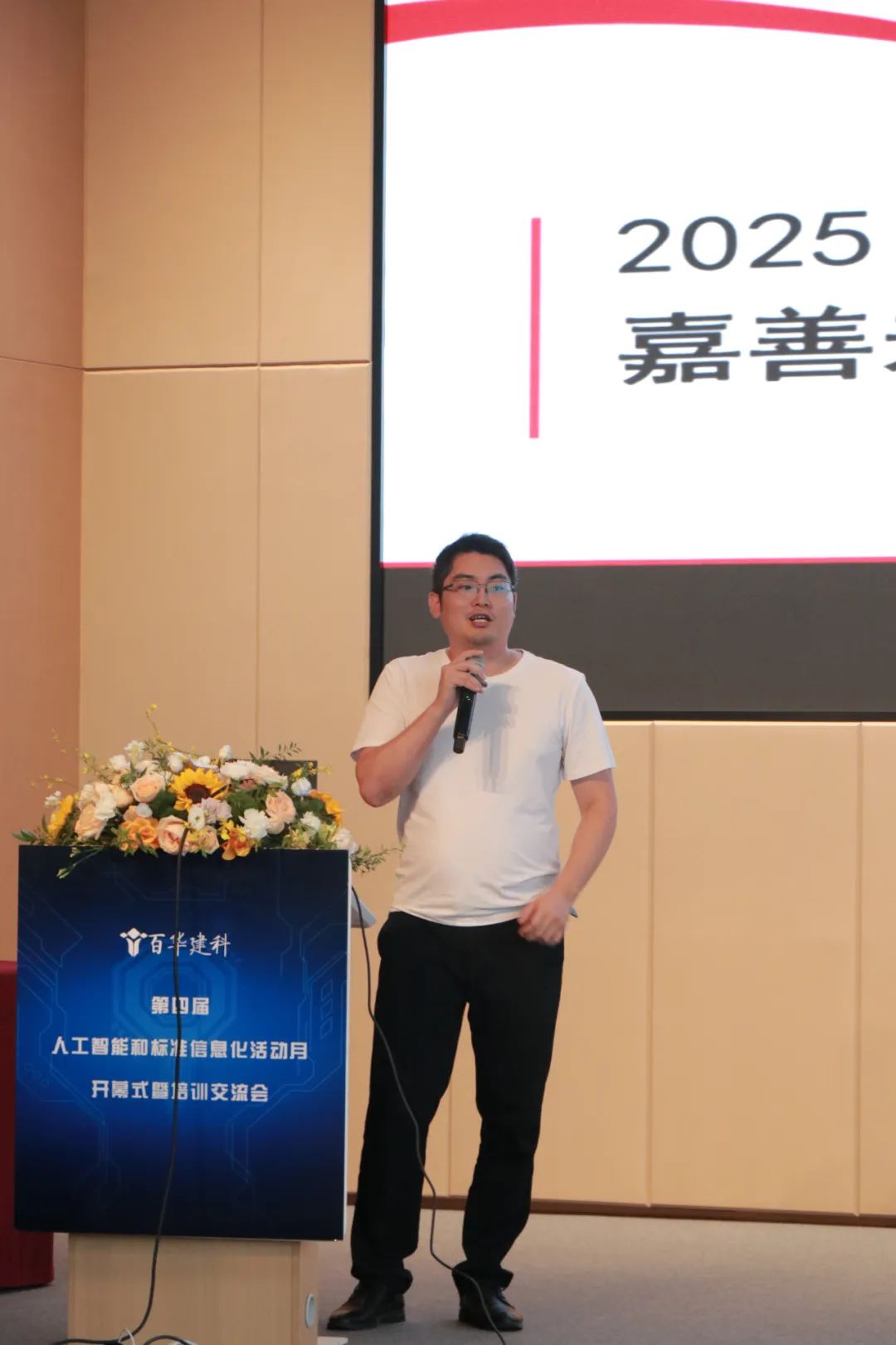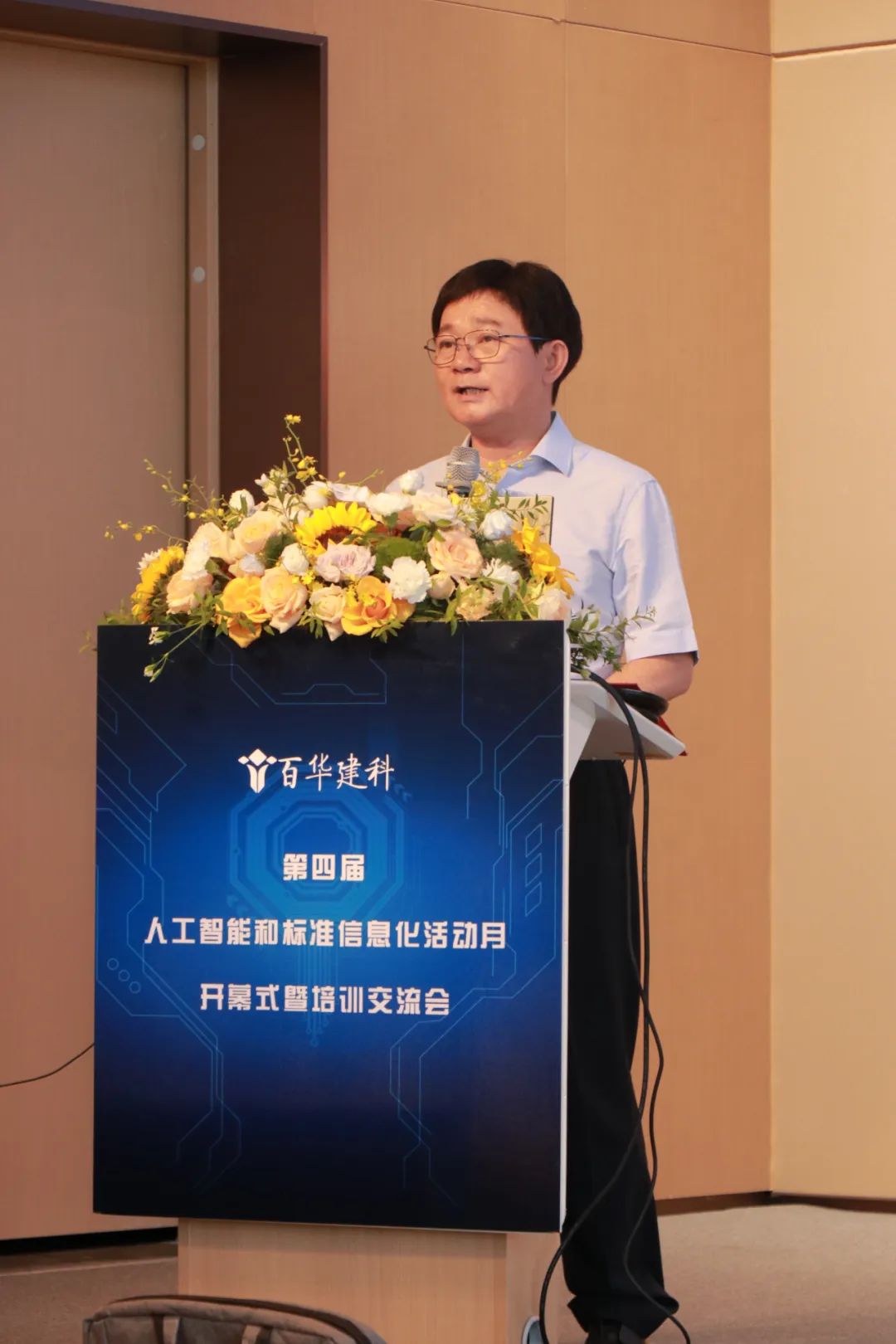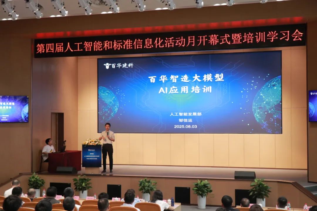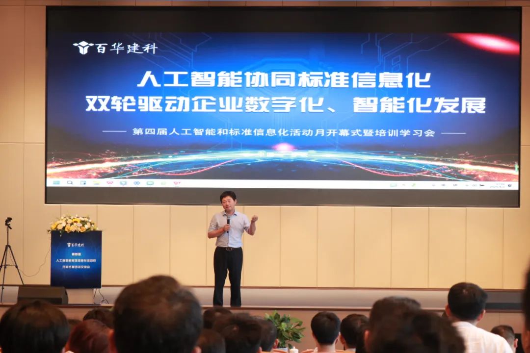 2025年8月2日上午,百合盛華建筑科技有限公司(以下簡稱“百華建科”)第四屆“人工智能與標準信息化活動月”開幕式暨培訓學習會寧波工業互聯網研究院四樓報告廳隆重啟幕。本次活動為期兩天,公司總部及分子公司的200余名管理骨干、技術精英與班組代表齊聚一堂。清華大學長聘教授、博士生導師范玉順教授作為特邀嘉賓蒞臨現場,共同見證這場以“人工智能協同標準信息化,雙輪驅動企業數字化、智能化發展”為主題的年度盛會。