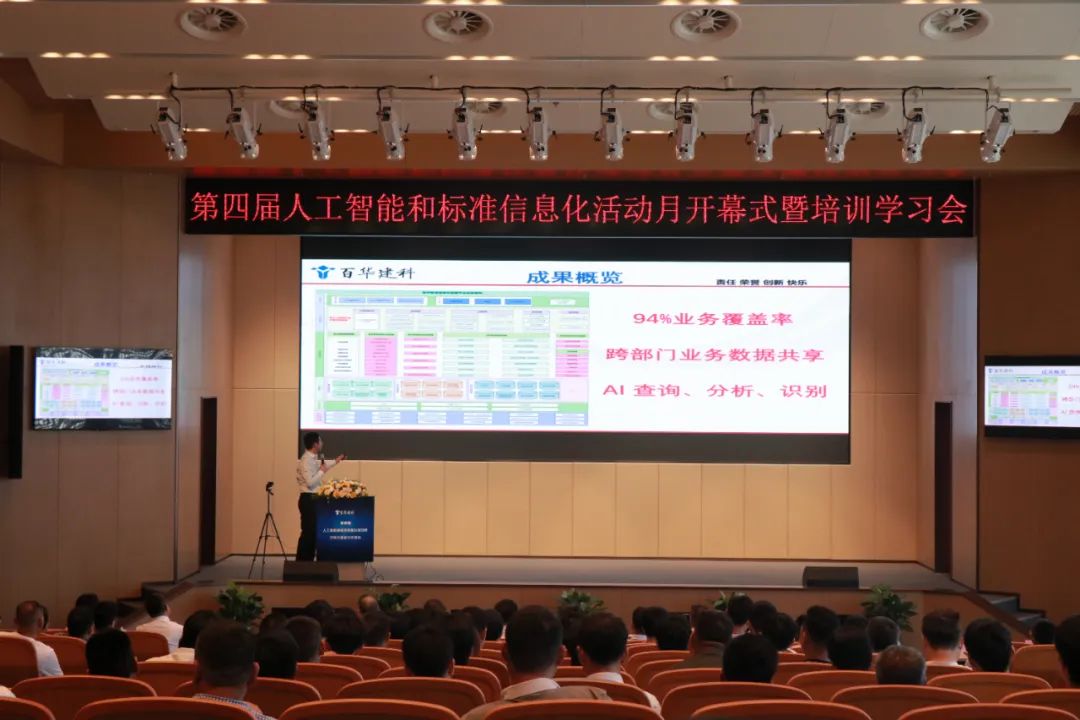 隨后,公司人工智能發展部副總經理鄒佳運發布《人工智能與標準信息化成果與未來發展》報告。他指出,“百華智造”管理系統已覆蓋公司94%的業務流程,實現跨部門數據共享,AI助手、AI視覺識別及AI報表分析等技術已全面落地應用。未來將重點強化預算管理模塊功能,通過授權精簡審批流程,深化AI應用,助力項目提質增效。