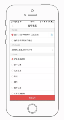 -訂/退單、出入庫單、調(diào)撥單、成本調(diào)整入庫單、采購訂退單等均支持標準模板打印自定義信息,其中訂單支持藍牙打印