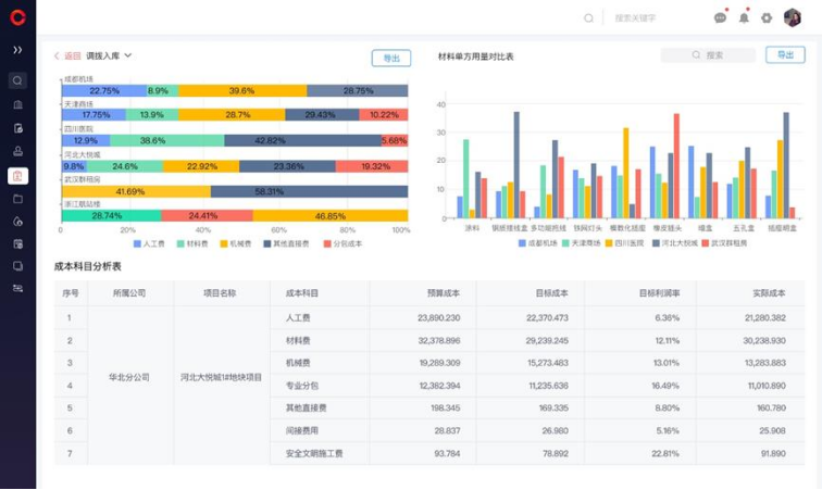 物資管控是項目成本的核心命脈。傳統模式下,單項目數千種材料的出入庫信息需人工逐條錄入,錯誤率高且耗時驚人。紅圈系統通過AI錄單助手實現革命性突破:自動識別合同關鍵條款、結算單明細及出入庫單據,精準提取材料名稱、規格型號、供應商等字段并秒級回填業務系統,減少90%人工操作。系統對材料量價實施全流程穿透式監管,結合歷史價格數據庫提供決策依據,實現"量價雙控"目標。動態追蹤材料從采購計劃、合同簽訂到現場消耗的全鏈路數據,確保物資狀況實時可視,為成本精細化管控筑牢根基。