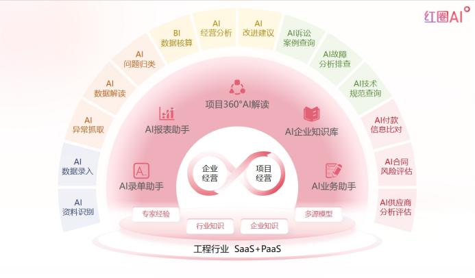紅圈工程項(xiàng)目管理系統(tǒng)及其AI系列智能產(chǎn)品通過提效率、降風(fēng)險(xiǎn)、控成本、管過程等核心價(jià)值,幫助工程企業(yè)實(shí)現(xiàn)項(xiàng)目全生命周期的降本增效。系統(tǒng)基于PaaS+SaaS模式,并融合AI系列智能產(chǎn)品,具備輕量、靈活、可快速交付、擴(kuò)展性強(qiáng)及智能化程度高等特點(diǎn),有效降低了中小型企業(yè)的數(shù)字化轉(zhuǎn)型門檻,并顯著提升了運(yùn)營效率。其覆蓋房建、市政、裝飾、機(jī)電、新能源等多種工程類型,能夠滿足不同企業(yè)的個(gè)性化與智能化管理需求。